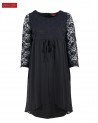 FRANCES FERRI: VESTITO CORPETTO E MANICHE PIZZO CON GEORGETTE AL FONDO SU CREEPE 95%POLIESTERE 5%ELASTAN