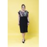 ABITO CON CORPETTO IN FANTASIA MULTICOLOR E ARRICCIO SU SPALLE 95%POLIESTERE 5%ELASTAN