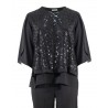 COMPLETO PANTALONE SOLTON E CASACCA IN PAILLETTES CON MANICA APERTA IN GEORGETET 95%POLIESTERE 5%ELASTAN