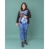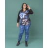 PANTALONE EFFETTO JEANS CON STAMPA FIORI IN CONTRASTO COLORE 76%COTONE 22%POLIESTERE 2%ELASTAN